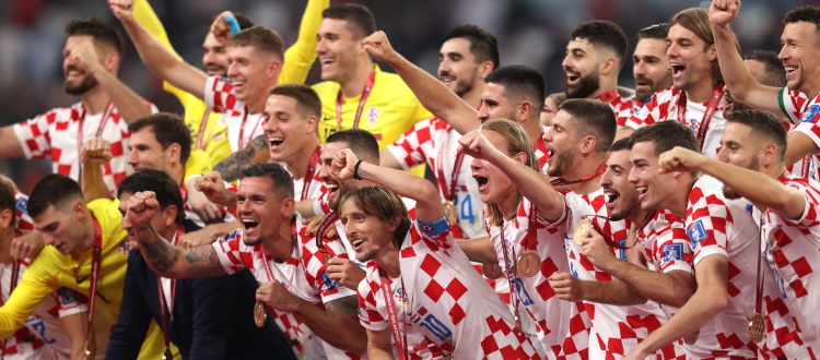 Dopo il secondo posto del 2018, la Croazia ha chiuso l’edizione 2022 dei Mondiali sul terzo gradino del podio. Oggi pomeriggio a Doha, infatti, gli uomini del c.t. Dalic hanno piegato 2-1 il sorprendente Marocco nella finalina per la medaglia di bronzo, confermandosi come una Nazionale di ottimo livello. I balcanici si sono portati in vantaggio al 7′ grazie ad un bello schema su calcio piazzato (lancio di Modric, torre di Perisic e gol in tuffo di testa di Gvardiol), ma i magrebini hanno subito rimesso le cose al 9′ grazie ad un’incornata da sottomisura di Dari. Al 42′ Orsic, con un pregevole destro a giro dal limite, ha riportato avanti i croati, poi un secondo tempo molto equilibrato si è concluso con un’inzuccata di En-Nesyri proprio allo scadere che ha sfiorato la traversa. Domani alle 16, come noto, sarà Argentina contro Francia, Messi contro Mbappé, per la coppa e la gloria: chi vince sale a quota 3 titoli nell’albo d’oro, staccando la perdente e l’Uruguay e portandosi ad una sola lunghezza da Italia e Germania.